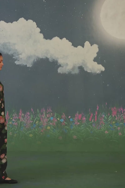 Lotus on bamboo silk long kurta set is one of the most distinctive and meaningful floral motifs in design. Known for its serene elegance and graceful petals, it symbolizes purity, resilience, and inner beauty. It creates a bold yet graceful pattern that feels both contemporary and deeply rooted in cultural artistry. The dark base colour acts as a dramatic canvas, allowing the lotus to bloom with heightened vibrance and clarity.