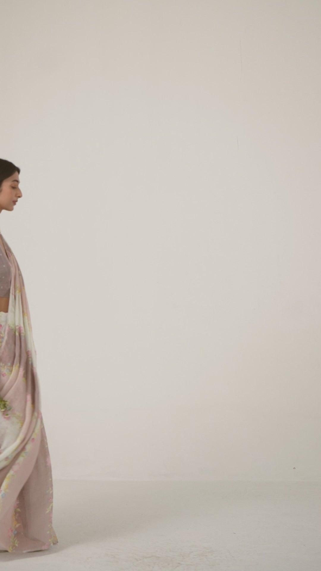 Soft brown, pink and cream colours outlined with rows of blooms makes this sari a perfect pick for dressing up. In handwoven linen thats easy to walk around in, this drape brings with it the sensuality of flowers effortlessly. A conversation starter, this sari will be a classic addition to your wardrobe that you will love more with each wear. Comes with running blouse piece.