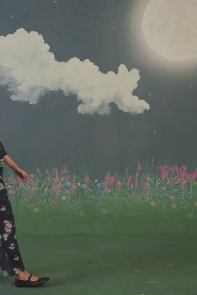 The most timeless and poetic Roses on a twilight black cotton cambric short kurta set remains a timeless masterpiece. It carries an unmistakable sense of romance, femininity, and refined beauty. The dark base acts as a luxurious canvas, allowing the pastel-coloured roses to appear luminous and delicately detailed.