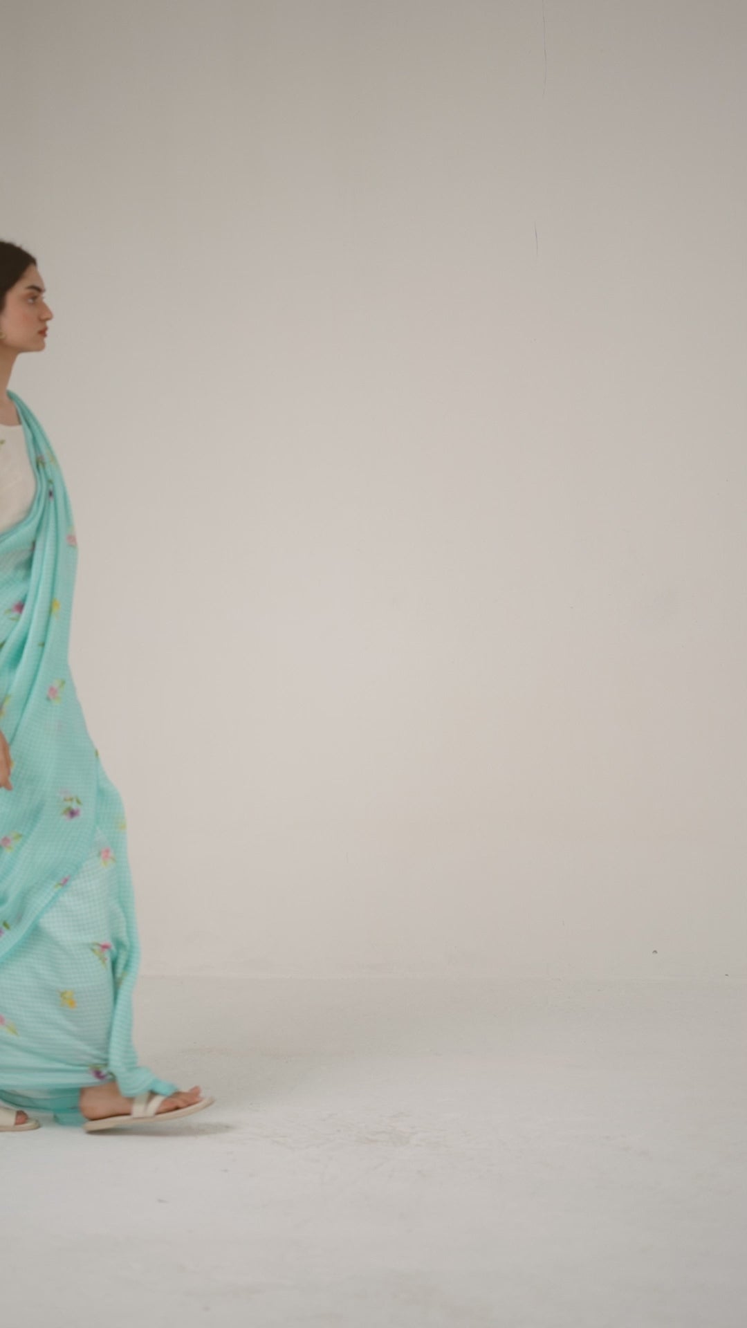 Handwoven Mulberry Organza Silk Sari with printed Silk blouse piece